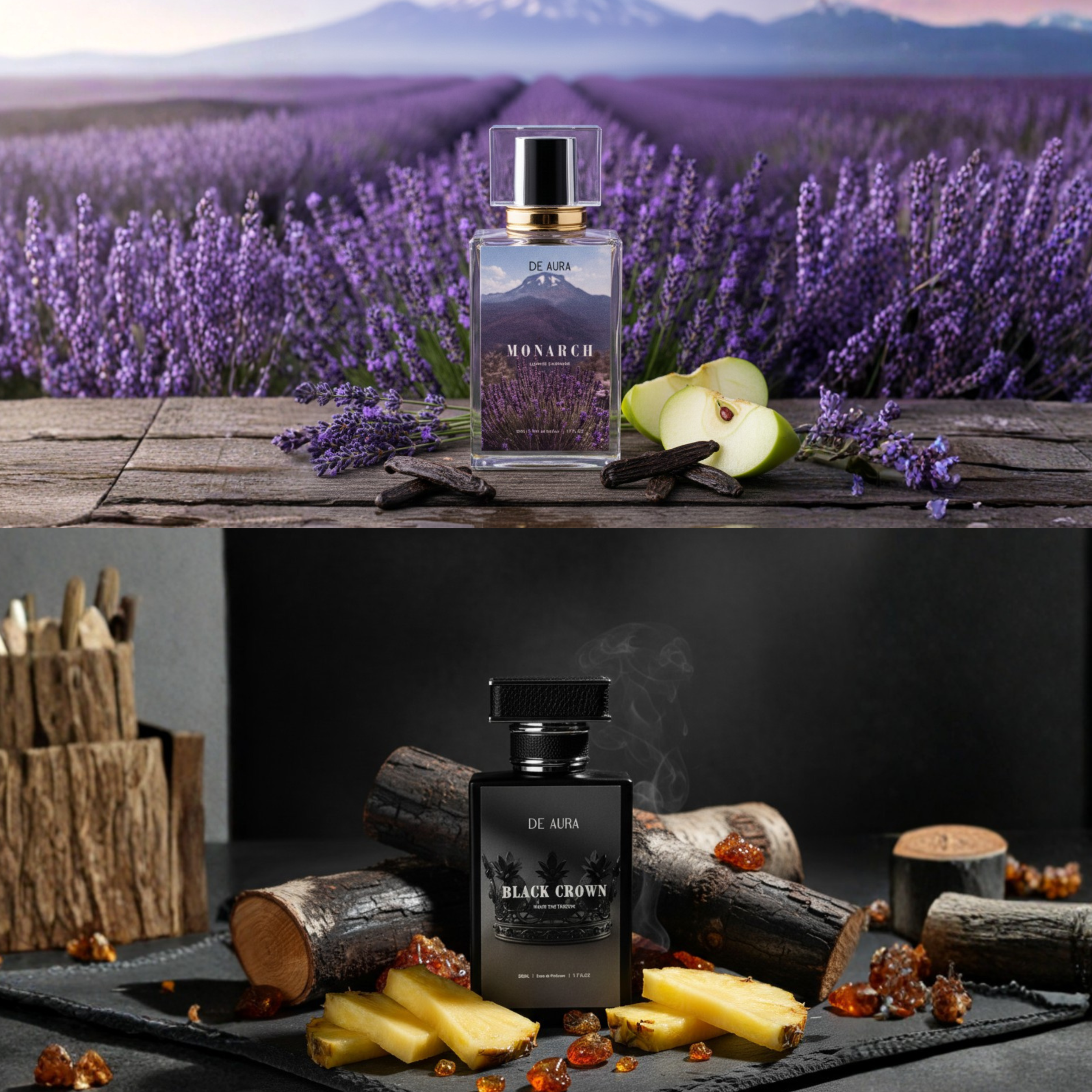 DE AURA scents are tailored to different personalities and occasions. Golden Sunset for freshness, Black Crown for boldness. Discover your perfect match in our collection descriptions.